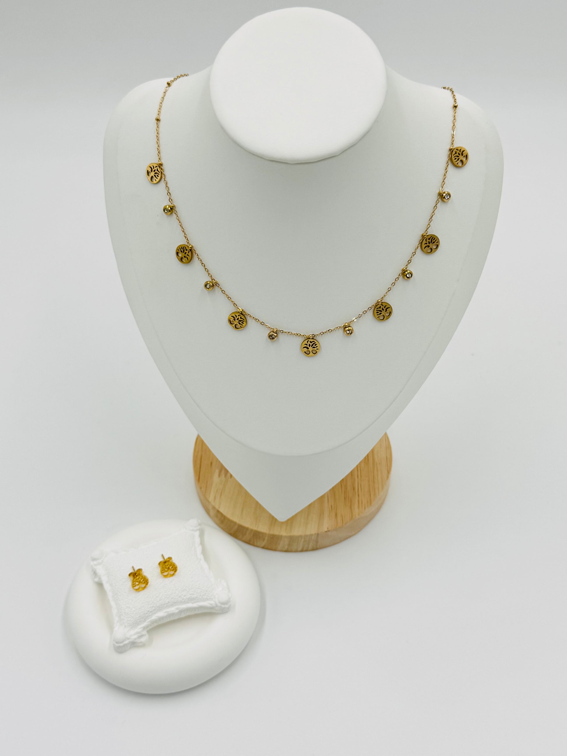 Celebrate beauty and positivity with this elegant ๐ณ Tree of Life Necklace and Earring Set! Featuring delicate gold-plated tree charms and sparkling accents, this set is perfect for adding a meaningful touch to any outfit.